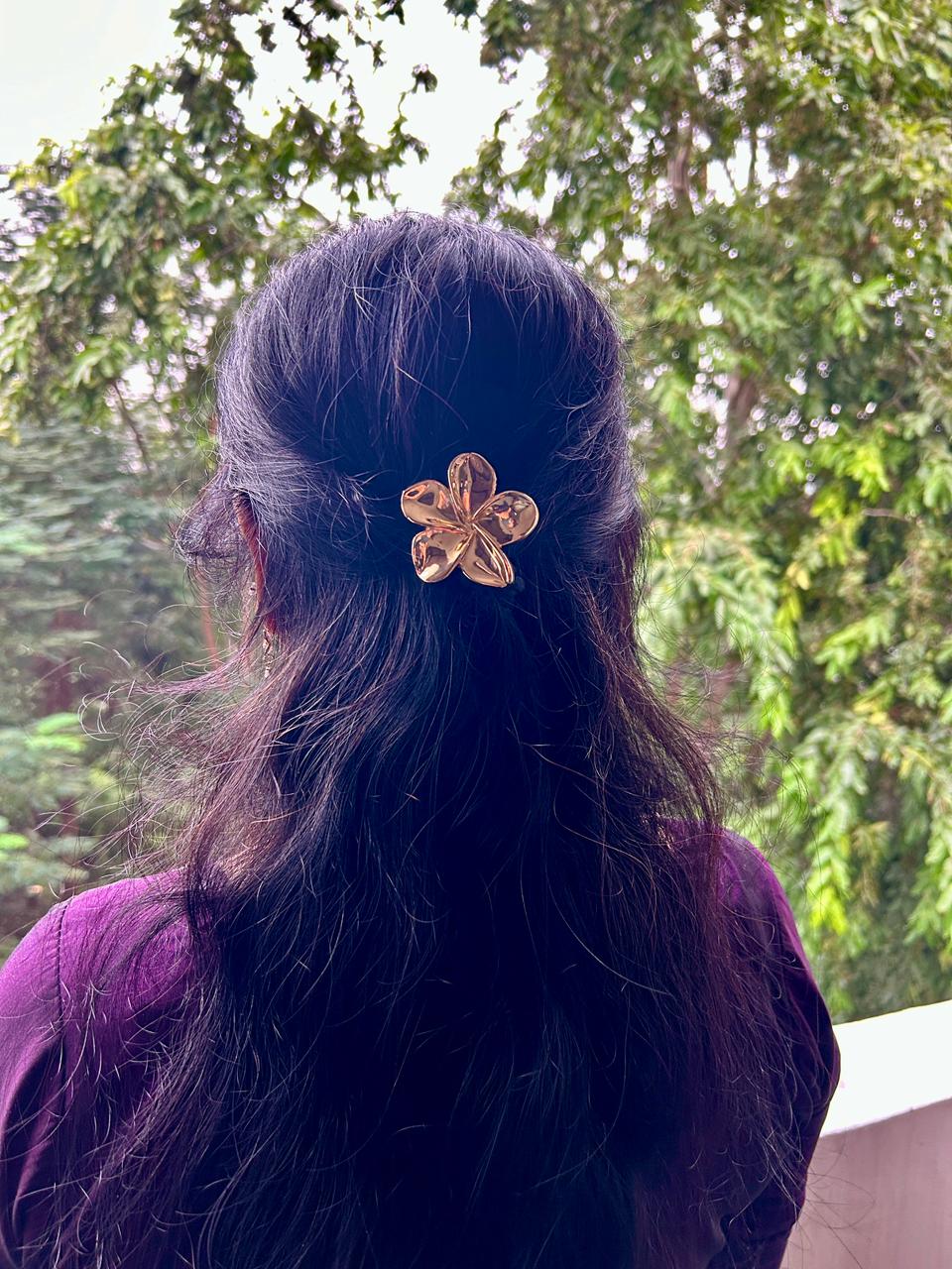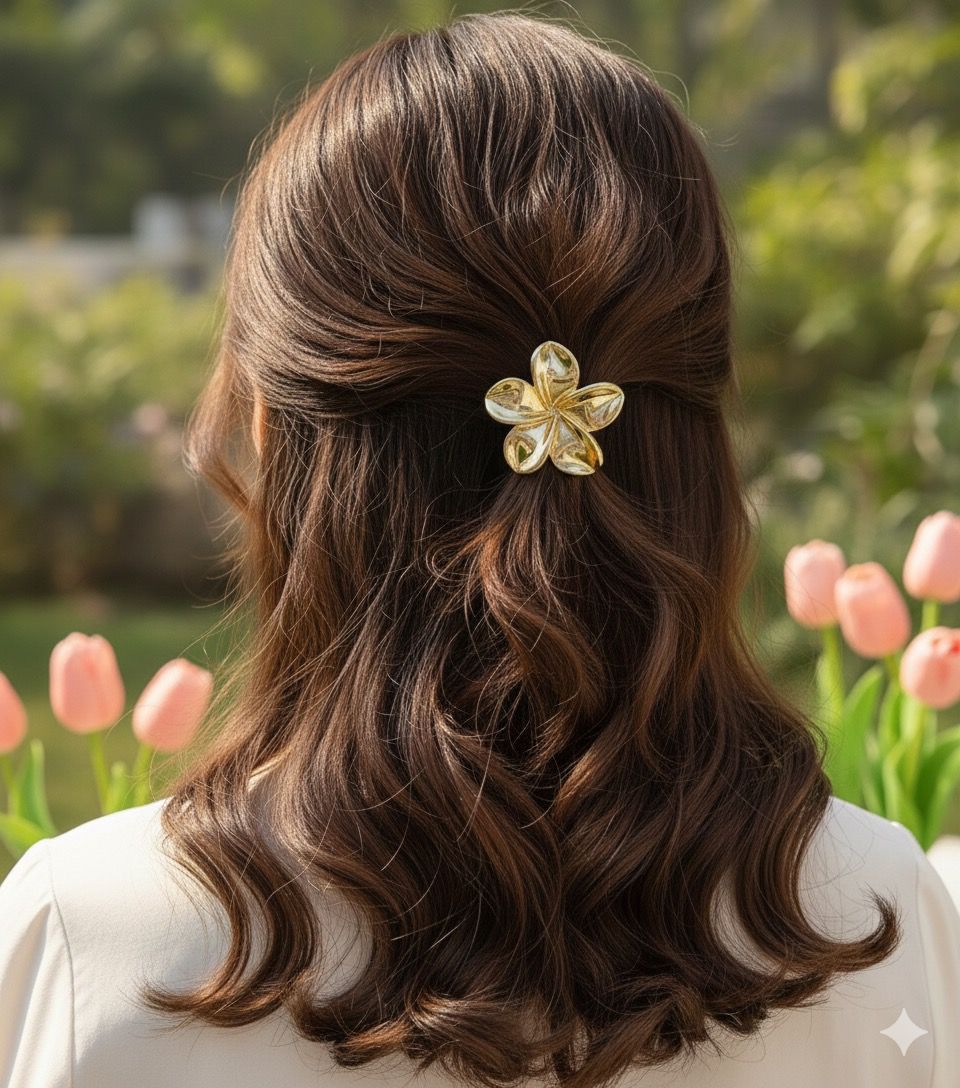 • Elegant Floral Design: The clip features a delicate, multi-petal flower design with a polished golden finish that gleams in the light.